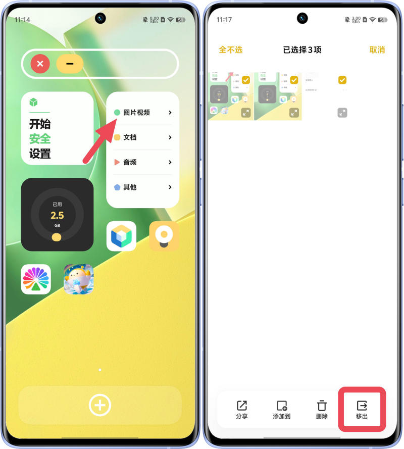 方法二、进入原子隐私系统的对应文件类型,勾选需要移出的文件选择移出